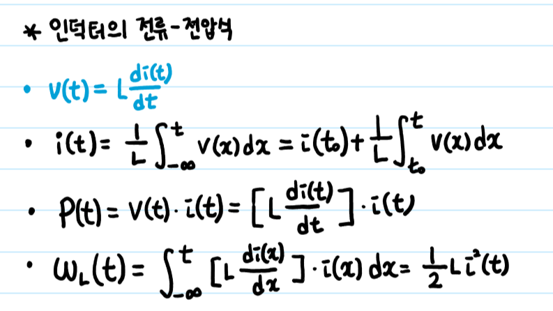 6. 인덕터의 전류-전압 및 저장된 에너지 값