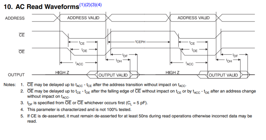 주소는 CE 또는 WE의 falling edge중 마지막에 발생하는 지점에서 래치됩니다.