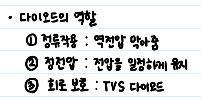 전압을 일정하게 유지해주는 용도로도 사용합니다. (제너 다이오드)