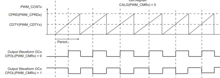 CDTY(PWM_CDTYx)보다 작을 경우 1이고 크면 0이 됩니다.