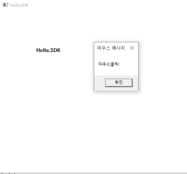 Hello, SDK 라는 창이 띄워져있고, 마우스를 클릭하면 다음과 같은 창이 뜨게 됩니다.