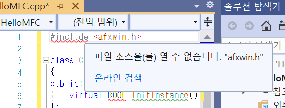 인터넷에 찾아보니 Visual Studio 2019는 MFC를 자동 지원하지 않기 때문에 수동으로 설치해줘야 한다고 합니다.