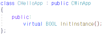 CWinApp클래스는 InitInsatnce()라는 가상 함수가 존재합니다.