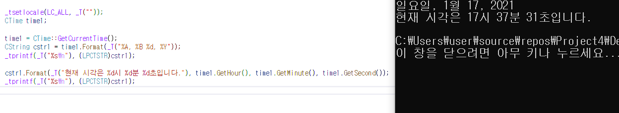 CTime :: Format() 함수는 객체에 저장된 시간 정보를 우리가 원하는 형태로 바꿔 문자열 형태로 리턴하는 것입니다.