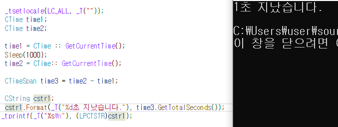 CTimeSpan 클래스는 시간이 아니라 기간을 저장하는 개념이라고 생각하시면 됩니다.