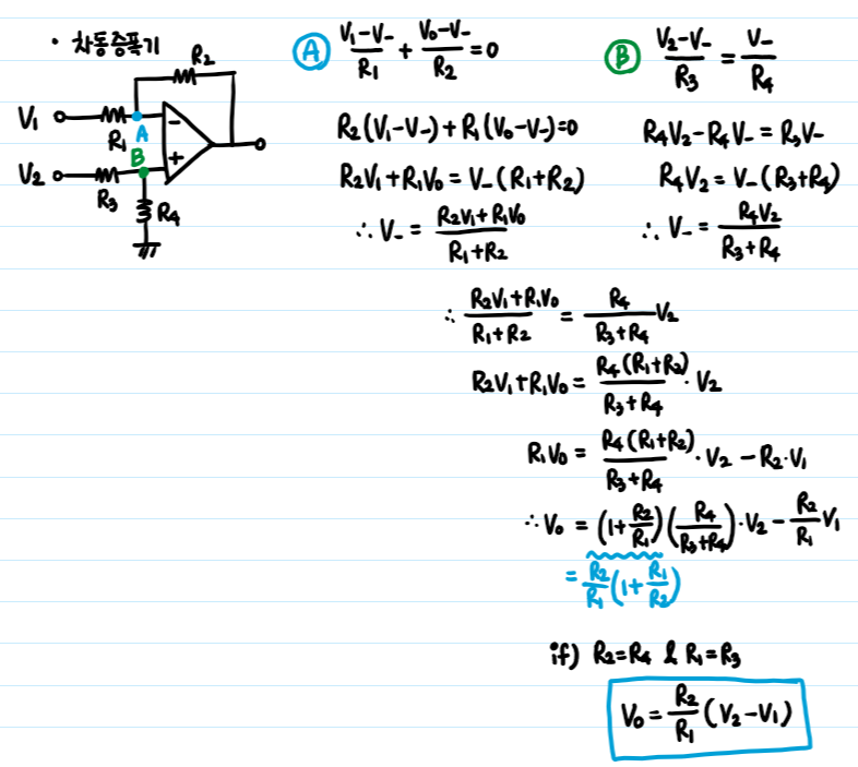 차동 증폭기는 말 그대로 두 입력 간의 차이를 증폭하는 회로입니다.