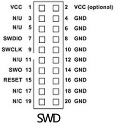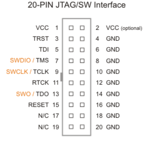 SWD는 시리얼 방식으로 통신하기 때문에 클럭(SWCLK)과 데이터(SWDIO) 2개의 핀만을 사용합니다.