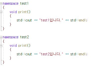 즉 표준라이브러리에 있는 변수 또는 함수들은 std 네임스페이스에 포함되어 있는데요.