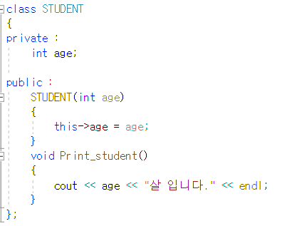 이 때 this->age는 멤버 변수를 뜻하고 age는 매개 변수를 뜻합니다.
