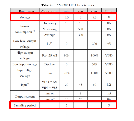 전원의 경우 최소 3.3V에서 최대 5.5V까지 공급이 가능하며 샘플링 주기가 2초임을 확인할 수 있습니다.