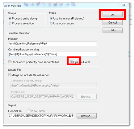 저는 ORCAD에서 BOM을 Excel 파일로 만들어 보도록 하겠습니다.