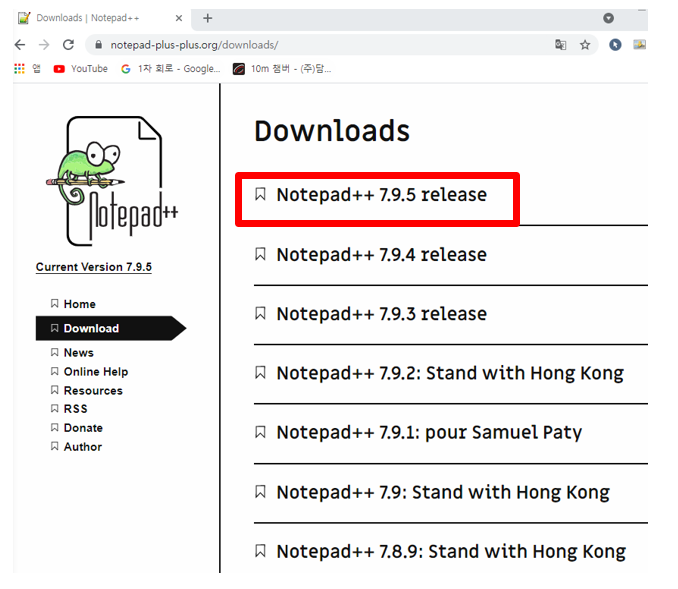 저는 그냥 오늘 기준 가장 최신 버전인 Notepad++ 7.9.5를 다운로드 해보도록 하겠습니다.