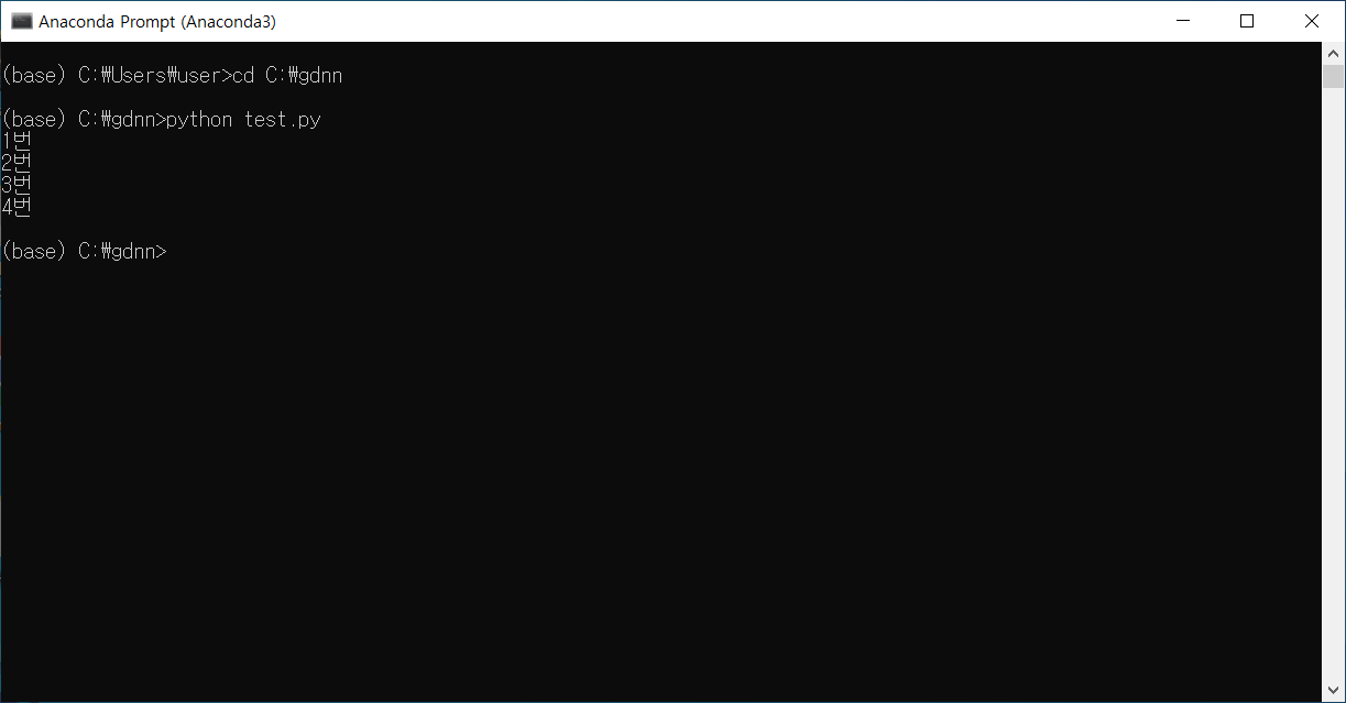 그리고 파이썬 코드를 저장한 C드라이브의 gdnn에 들어가줍니다.