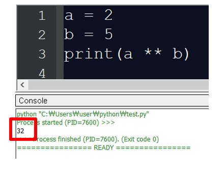 2의 5제곱인 32가 출력되는 것을 확인할 수 있습니다.