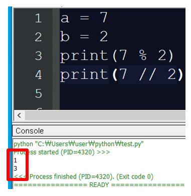 나눗셈 후에 나머지를 반환하고 싶으면 %연산자를 몫을 반환하고 싶으면 // 연산자를 사용하면 됩니다.
