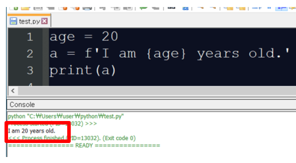 파이썬 3.6버전부터는 f문자열 포매팅 기능을 사용할 수 있습니다.