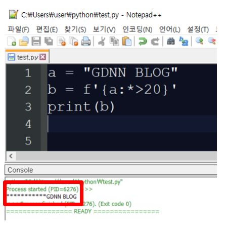 이번에는 f문자열 포매팅을 이용하여 공백을 *로 채우고 오른쪽 정렬을 해보도록 하겠습니다.