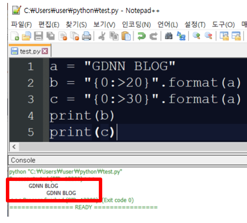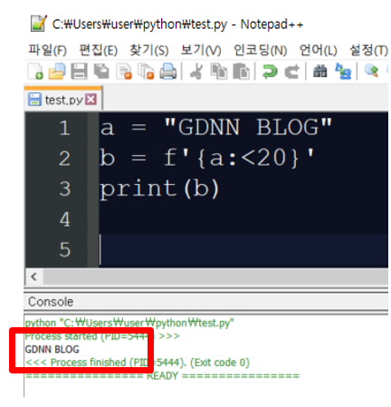 이번에는 f 문자열 포매팅을 이용해서 왼쪽 정렬을 해보도록 하겠습니다.