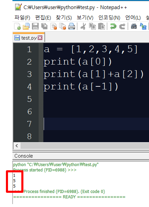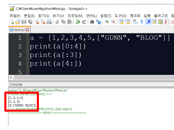 a[0:4]까지 할 경우 a[0]부터 a[3]까지의 요소값들을 나타내게 됩니다. 그래서 1,2,3,4가 출력된 것을 확인할 수 있습니다.