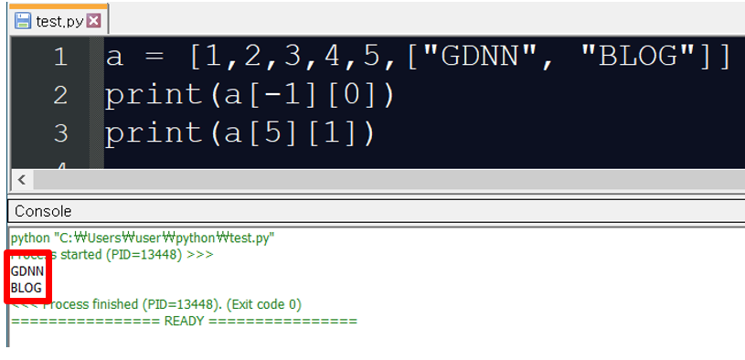 이 때 a[-1]과 a[5]는 ["GDNN", "BLOG"] 리스트를 나타내는데요.