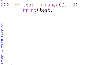 와 같이 입력하면 2부터 9까지의 숫자가 출력된 것을 확인할 수 있습니다.