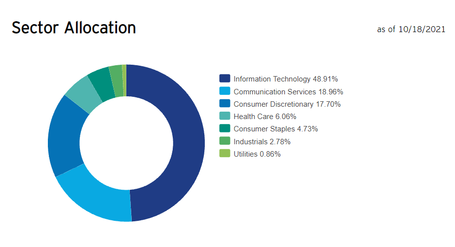 애플, 마이크로소프트, 아마존, 페이스북, 구글, 테슬라등 가장 핫하다고 할 수 있는 대형 성장주들이 포트폴리오의 많은 부분을 차지하고 있습니다.