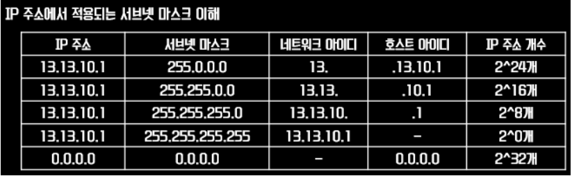 '1'의 비트가 네트워크 부분, '0'의 비트가 호스트 부분을 나타내는데요.