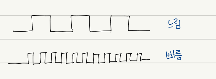 즉 위의 그림에서 위의 신호를 입력하게 되면 느리게 아주 조금 돌았을 것이고