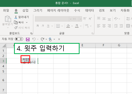 오늘은 Excel에서 윗주를 사용하는 방법에 대해 알아보도록 하겠습니다.