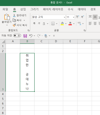 오늘은 Excel에서 세로로 입력하는 방법을 한 번 배워보도록 하겠습니다.