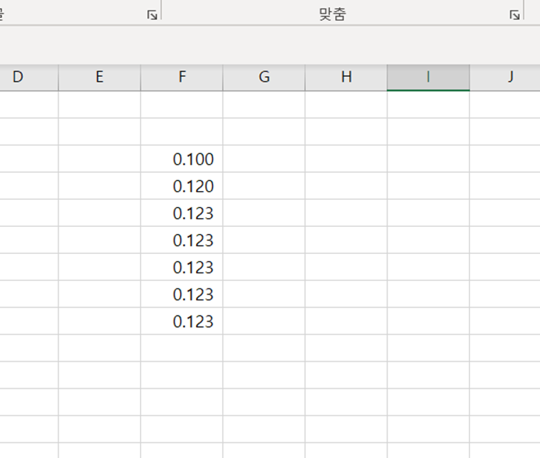 소수 셋째자리까지 나타나는 것을 알 수 있습니다.