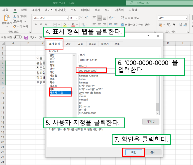 6) 형식에 '000-0000-0000'을 입력합니다.