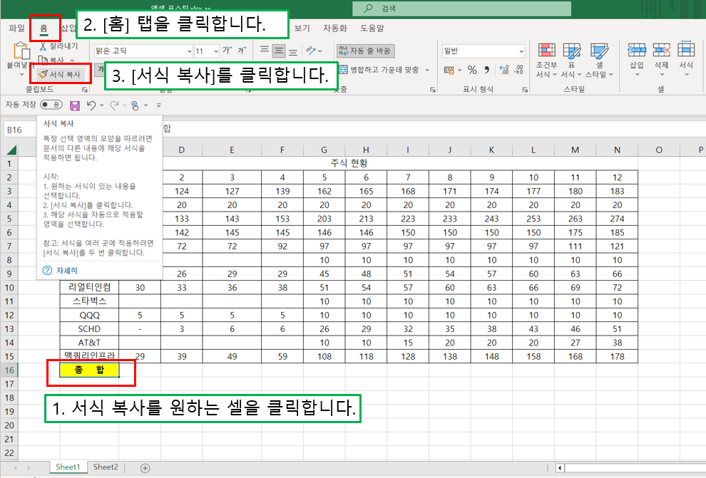 3. 클립보드의 페인트 붓 모양 아이콘의 [서식 복사]를 클릭합니다.