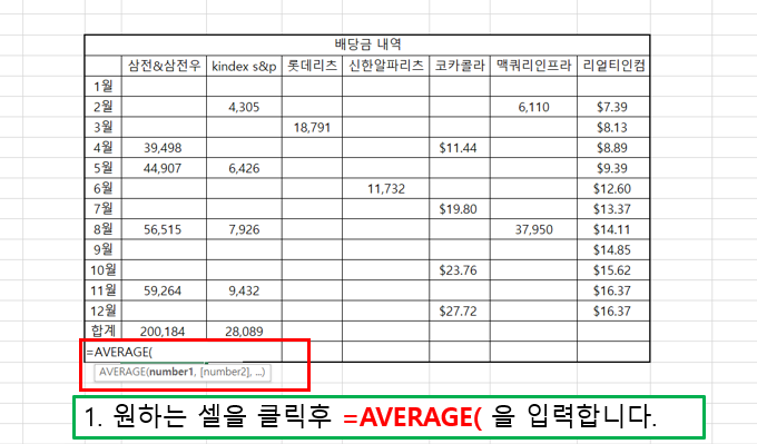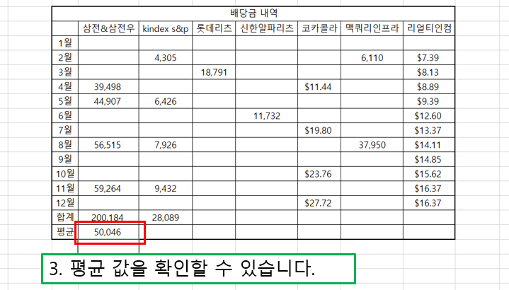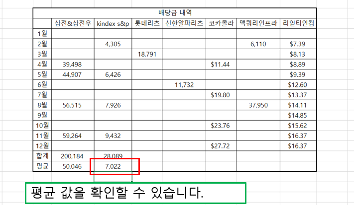 저는 주식별로 작년에 받은 배당금의 평균치를 구해보려고 합니다.