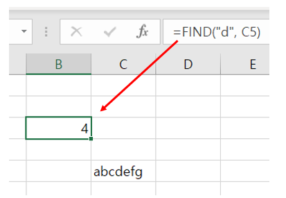 -> [C5] 셀에서 알파벳 d의 위치를 찾습니다.