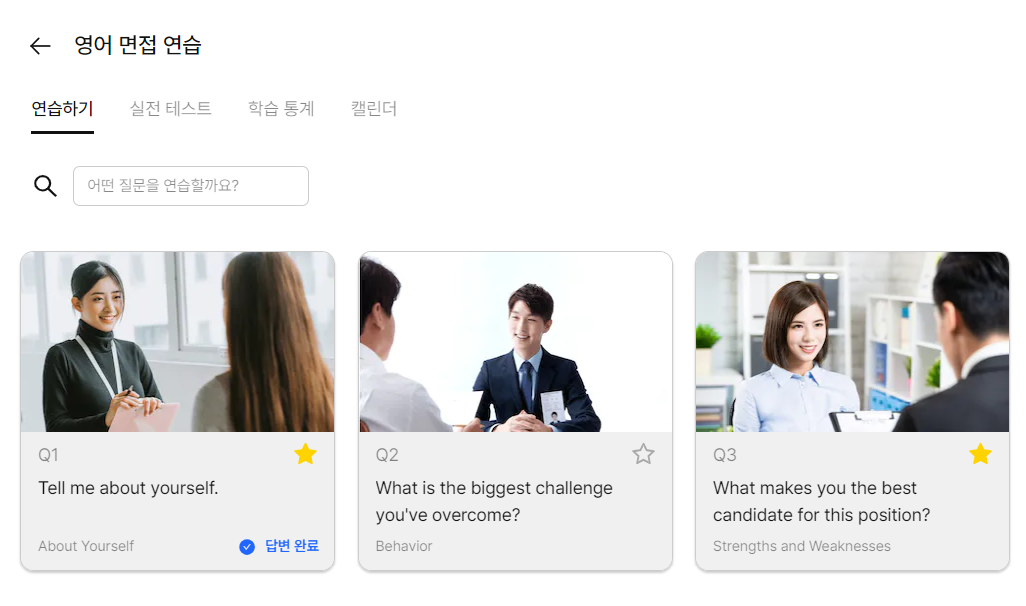 긱하우스는 IT 기술을 활용해 외국계, 해외 취업을 준비하는 분들을 위해 영어 면접 준비를 돕는 교육을 제공합니다. 그리고 면접 예상 질문과 답변 템플릿을 제공하는데요. AI 영어 실전 면접을 수행하고 피드백과 모범 답변 확인까지 할 수 있습니다.