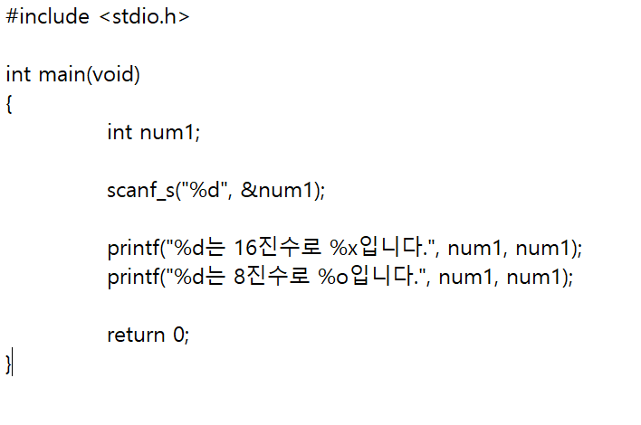 scanf_s안의 %d를 보면 10진수 정수를 입력받겠구나를 알 수 있고