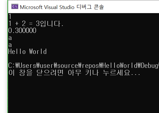 3. 소수는 %f를 이용해서 표현을 했습니다.