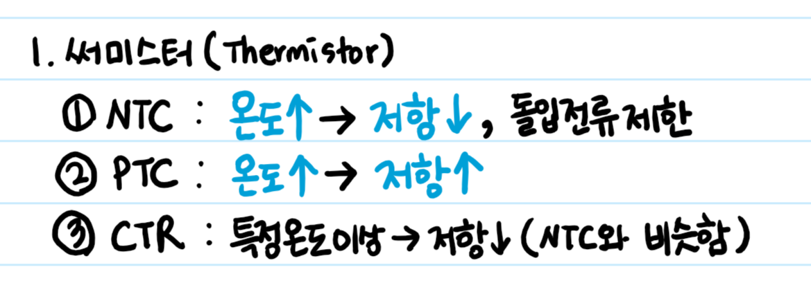 2) PTC : Positive temperature coefficient thermistor로 정방향 온도계수로