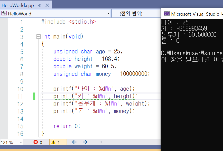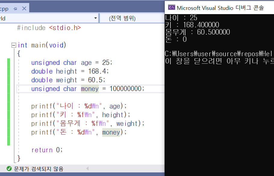 만약 unsigned char형에 돈과 같이 큰 돈을 대입하면 어떻게 될까요?