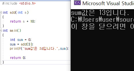 또한 return되는 값이 있으므로 그 값을 sum에 저장해둔 것입니다.