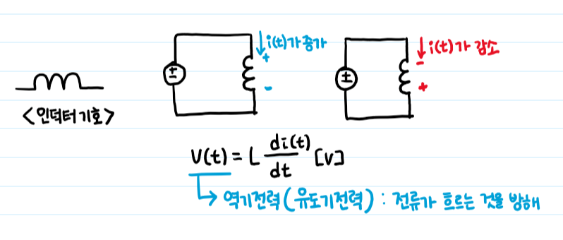 회로에서 전류가 변하면 그것을 방해하는 방향으로 전압을 유도합니다.
