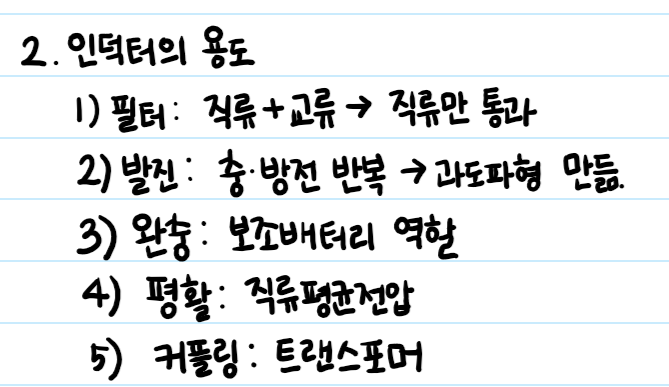 인덕터의 역할을 크게 다섯가지로 구분해 보았습니다.