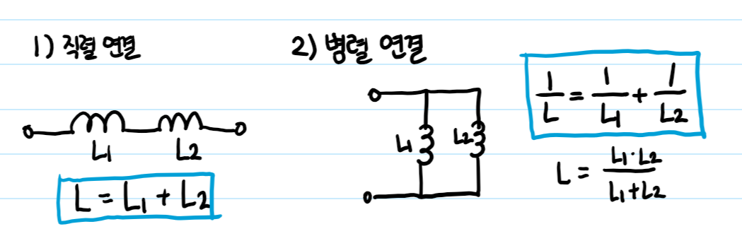 인덕터를 직렬로 연결할 경우에는 저항의 직렬 연결과 비슷하고,