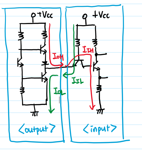 TTL은 출력이 High일 때에는 출력단에서 전류가 흘러나가 다음 입력단 회로로 들어가게 됩니다.