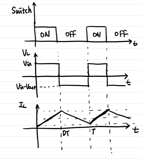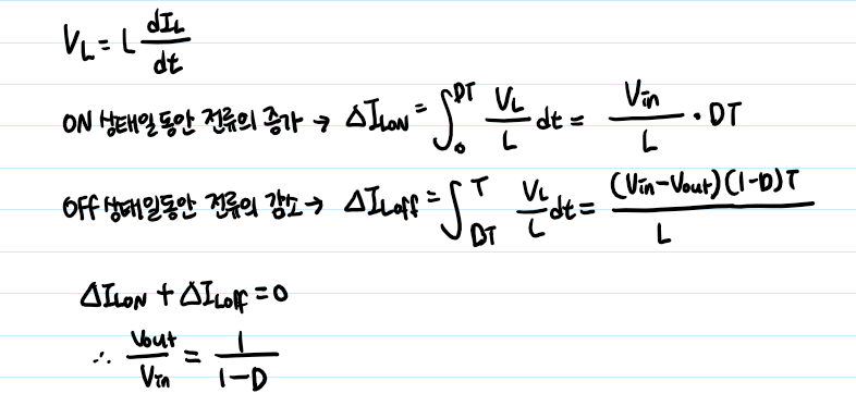 Switch가 OFF 되었을 때 인덕터의 전압은 Vin-Vout이었습니다.